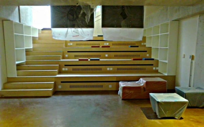 Naše firma vyrobila a dodala vybavení šaten (šatní lavice), dále jsme instalovali do tříd žákovské lavice, židle, sušáky na výkresy, tabule a další vybavení.