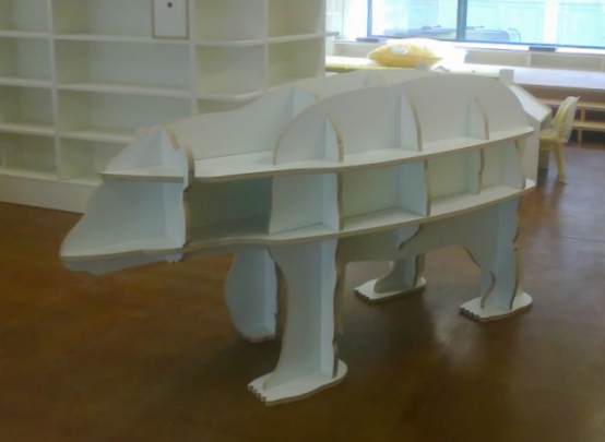 Naše společnost Quick Office s.r.o. vytvořila knihovničku ve tvaru ledního medvěda. Jedná se o trojrozměrný model vyrobený z 20mm silné laminované překližky. Konstrukce umožňuje uložení knih v těle medvěda. Tento „medvěd“ s knihami je umístěn v dětském oddělení Městské knihovny Prahy 3 Žižkov.