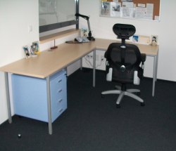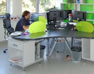 Moderní kancelářský stůl má převážně pracovní desku z LTD popř. jiného materiálu na bázi dřeva/plastu + kovové nohy. Kovové nohy lze rozdělit do následujících kategorií: